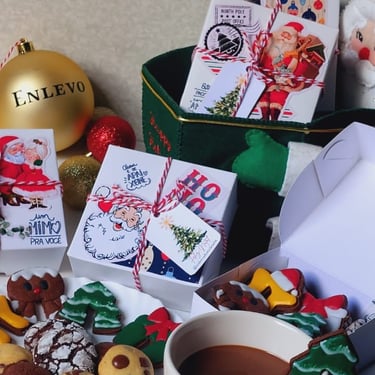 Para este natal, trouxemos uma caixinha com variedades de biscoitos natalinos.