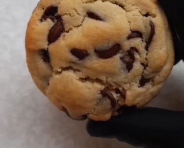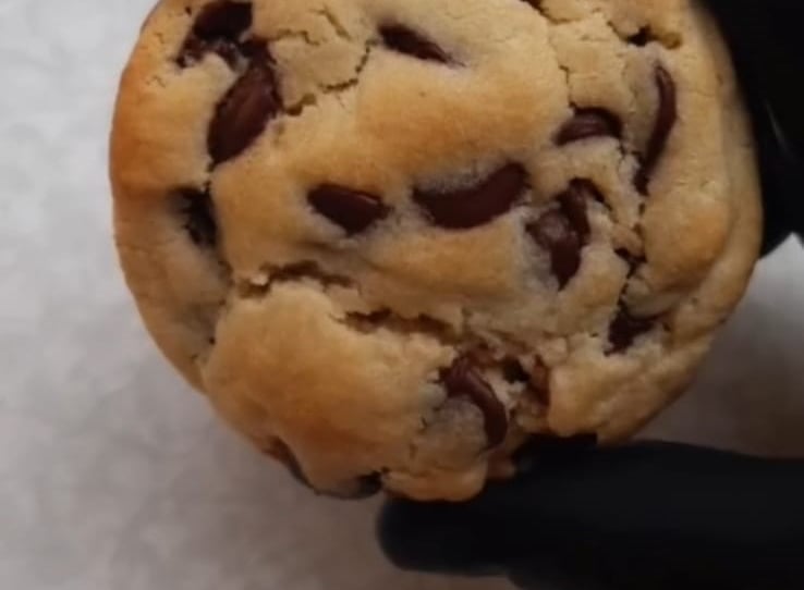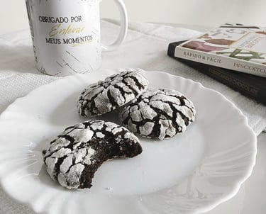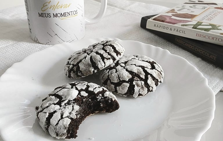 Biscoito de cacau com o interior macio e uma leve crocância do craquelado de açúcar