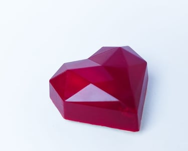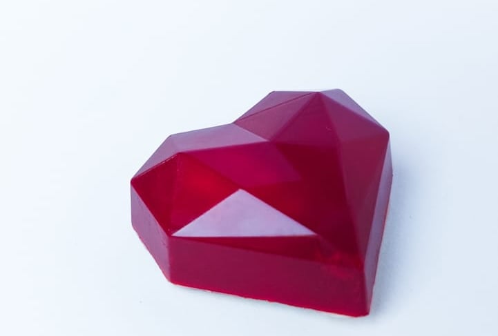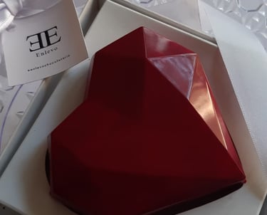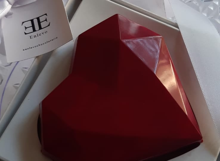 Bombons de formatos variados de coração lapidados e com recheios crocantes.