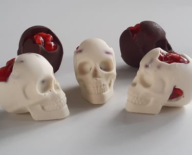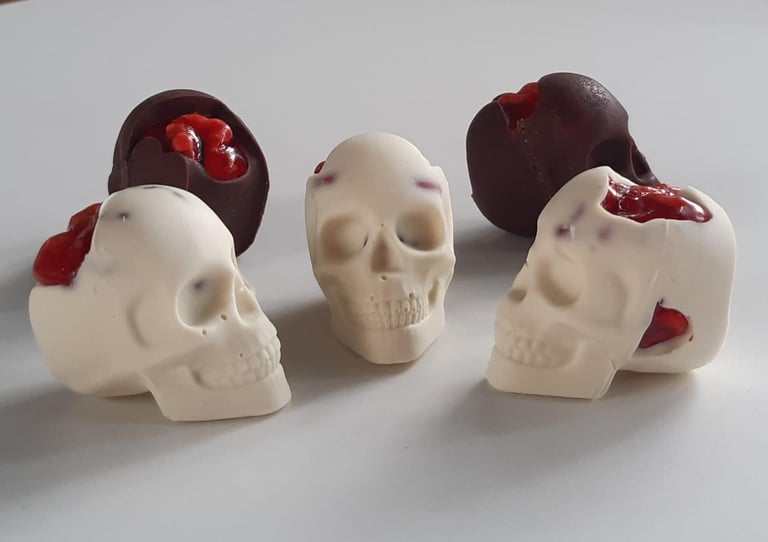 Bombons de formatos variados, lapidados e com recheios cremosos.
