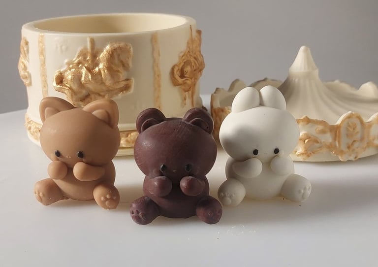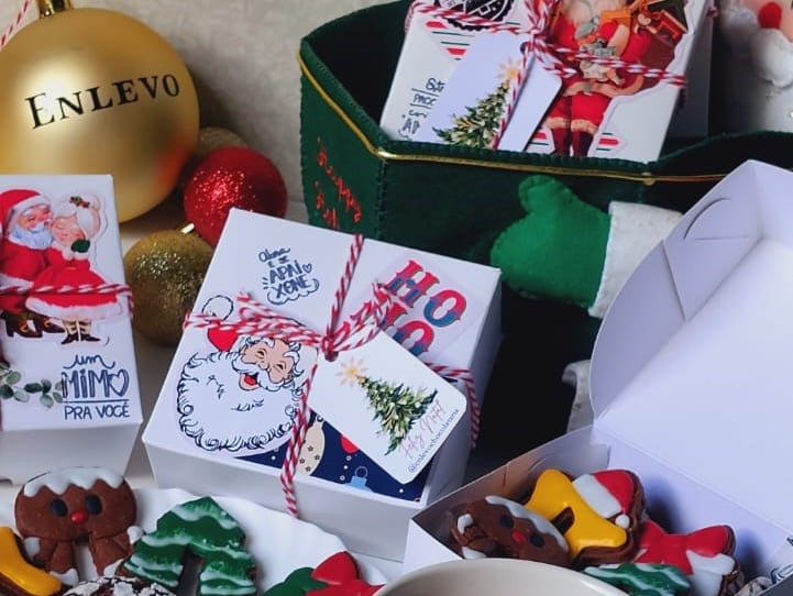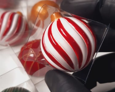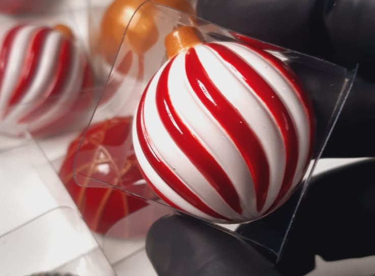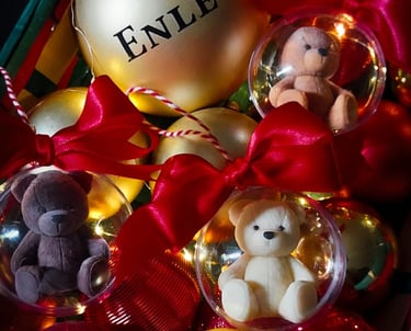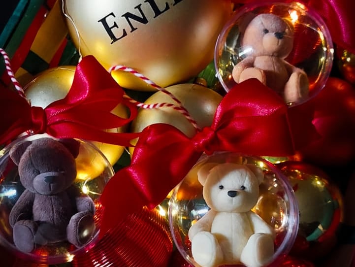Ursinhos de chocolate em bolinha de árvore de natal de