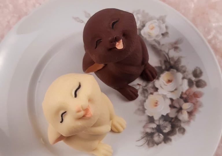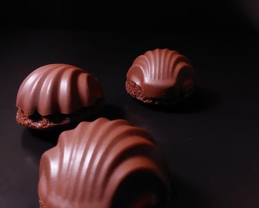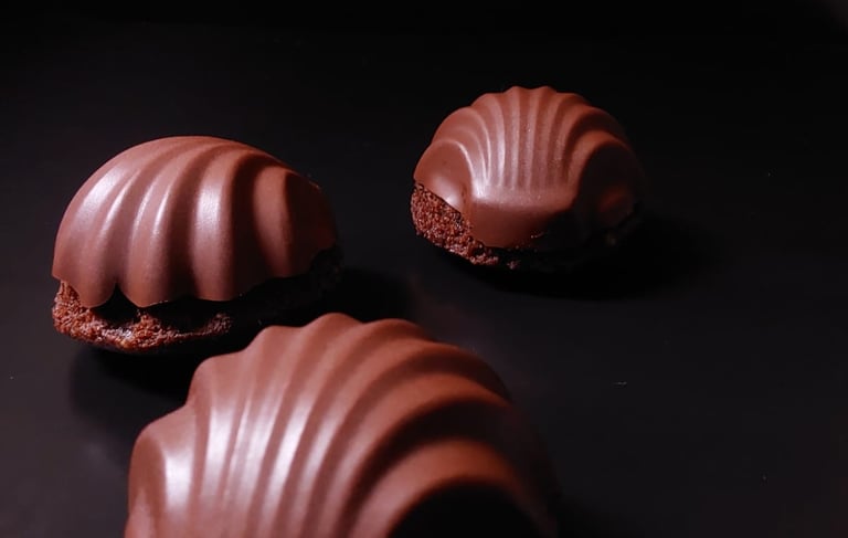 Massa amanteigada com uma casca de chocolate em formato de concha.
