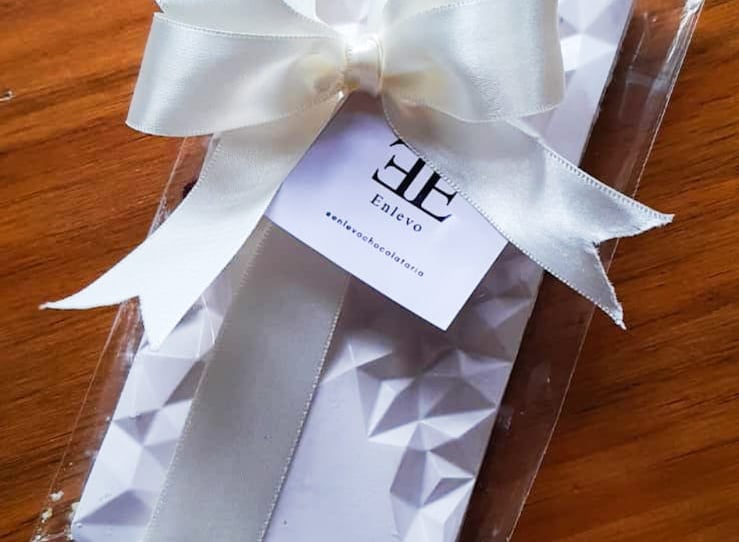 Barra de chocolate com oleaginosas e pétalas de rosas.