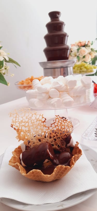 Pedido mínimo de 6kg de chocolate por cascata (serve em média 30 pessoas).